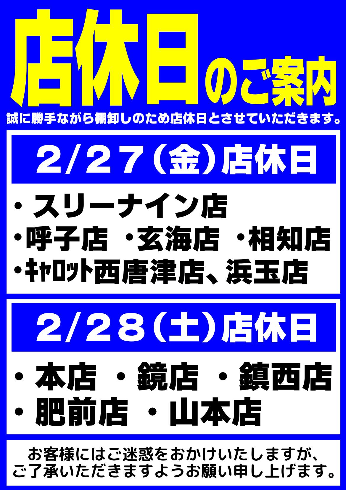 【2026年2月28日(土) 店休日店舗】